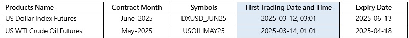สัญญาซื้อขายล่วงหน้า CFD ใหม่จะถูกซื้อขายตามตารางต่อไปนี้:
