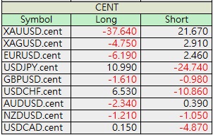 ตารางต่อไปนี้เป็นข้อมูลที่แสดงค่าสวอปข้ามคืนของการปรับ FOREX และโลหะ